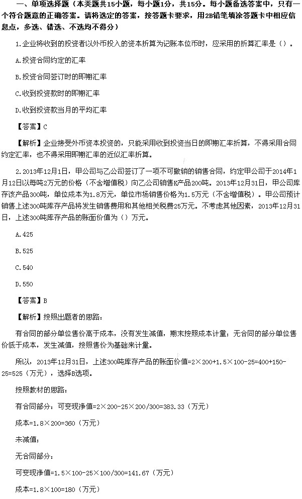 点击进入>>2014年《中级会计实务》考试真题 考试答案 在线估分 考后讨论区>>