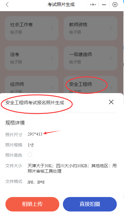 ②选择——安全工程师——注意查看照片尺寸,此报名照片尺寸为官网要求的标准规格,考生可放心使用。