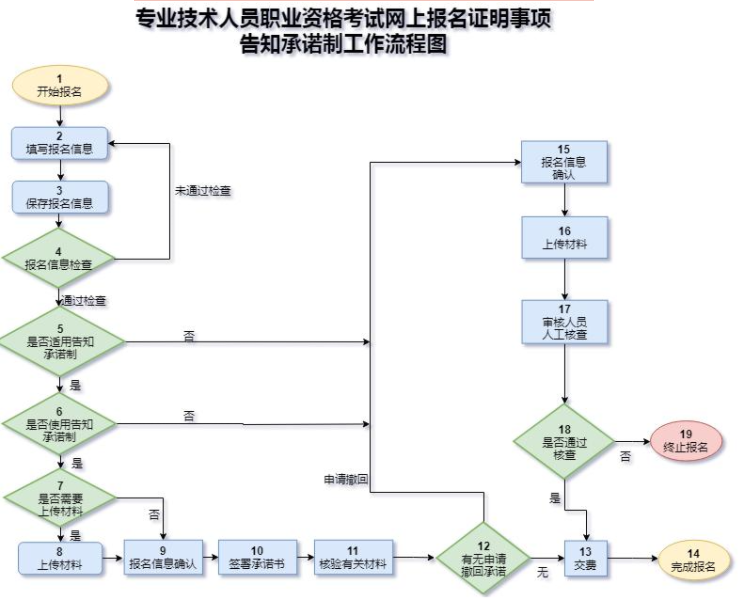 报考人员作出承诺后,可在未缴费且报名截止前通过网上报名系统撤回承诺。撤回承诺后,报考人员应按报名地考试组织机构有关规定办理相关事项,提交相关证明材料。报考人员撤回承诺的,本年度该项考试中不再适用告知承诺制。