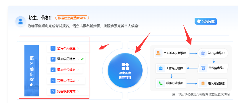 新考生需注册通过后方可报名,注册信息原则上24小时内返回核查结果,建议报考人员提前完成相关个人信息补充,以免错过报名。
