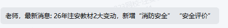 近日,学霸君收到一条新消息:“26年注安教材2大变动,新增“消防安全” “安全评价””