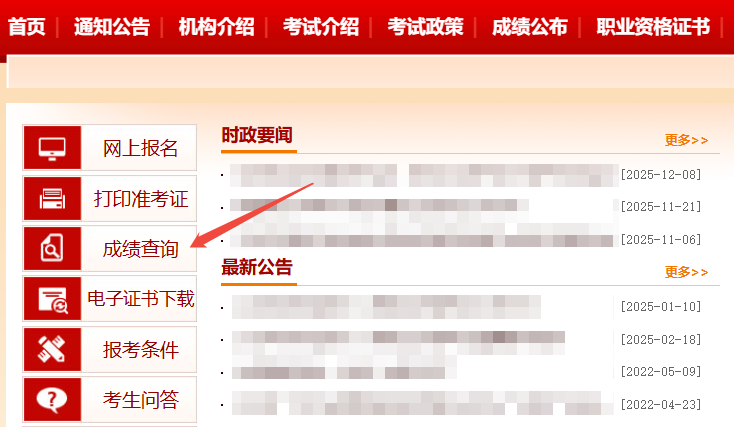 在官网首页的左侧位置,点击第三行的“成绩查询”,就可以进入查询界面。