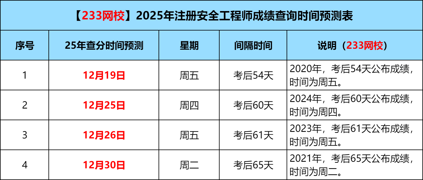 根据注安历年的查分规律,我们基本可以锁定4个查分日期,分别是:12月19日、12月25日、12月26日或12月30日,这几天的上午10点、11点可以多关注一下。