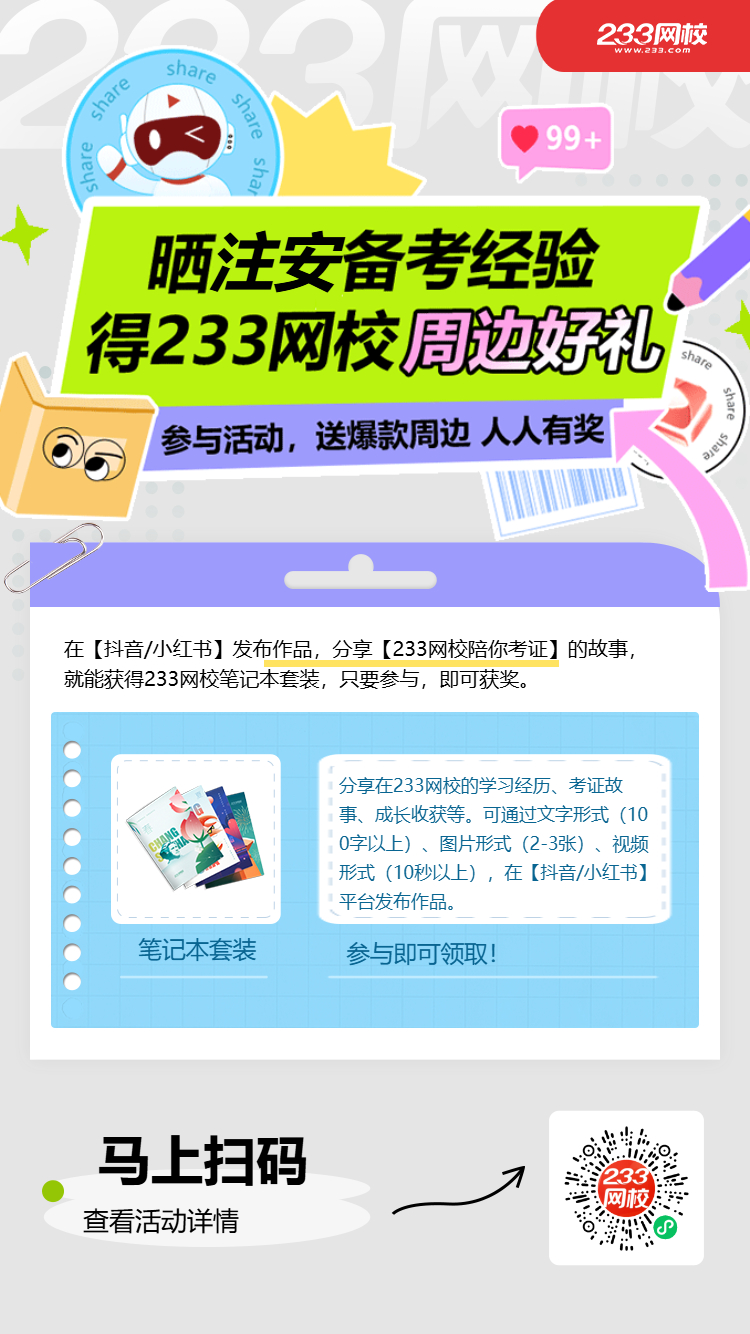 ③作品需带话题#233网校注安 和 #233网校,并抖音@233旗舰店注安上岸,小红书@233网校注安考试