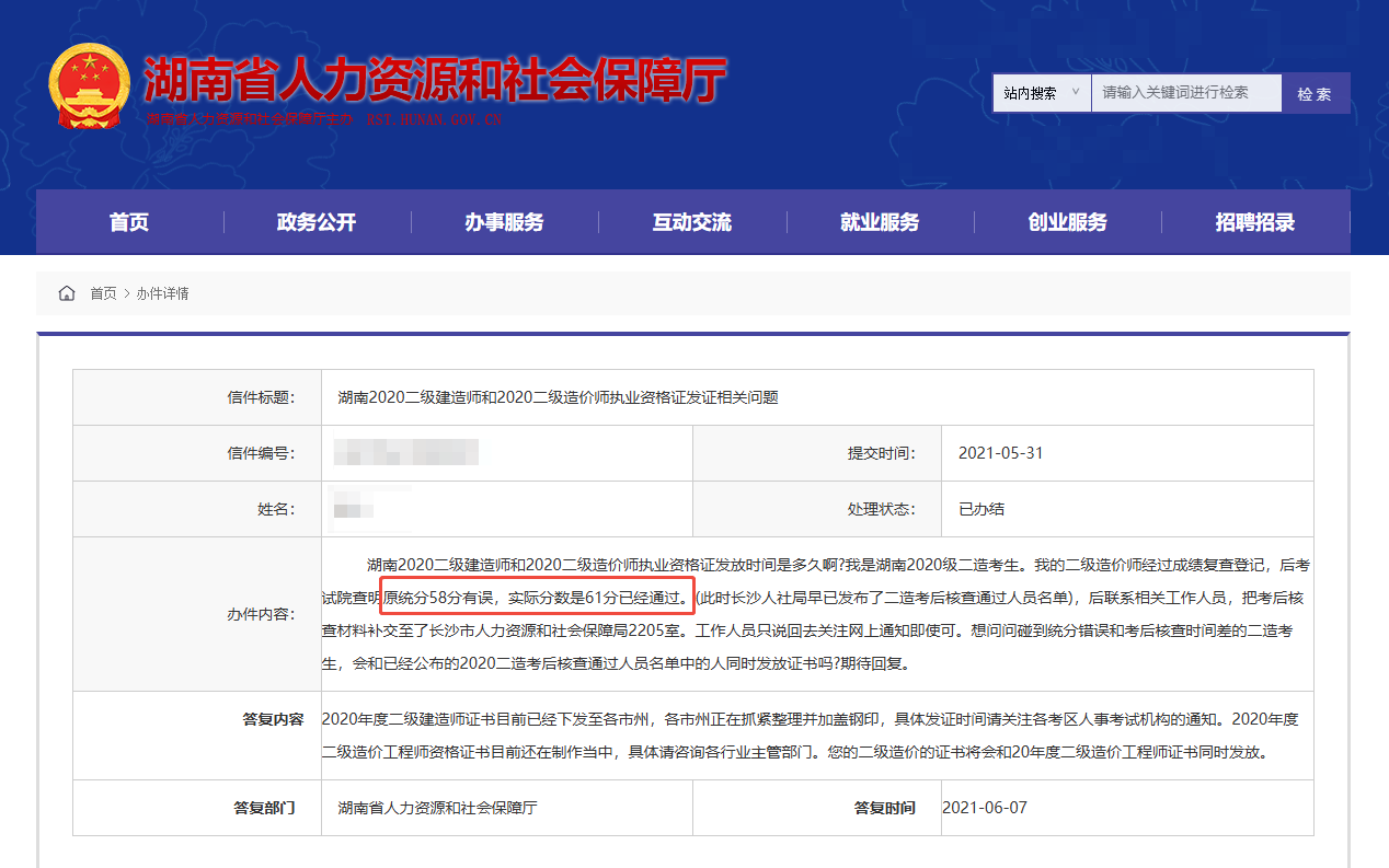 4.答复成绩复查结果。省级人事考试机构将考试成绩复核结果答复成绩复查申请人。复查后的成绩为最终成绩。