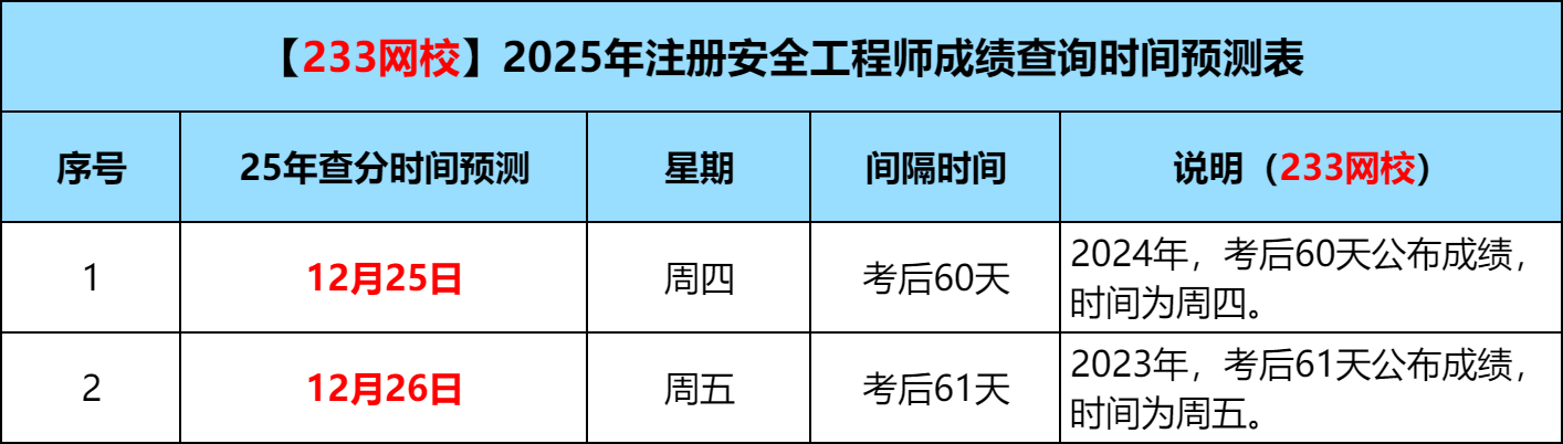 12月25日正好是星期四,公布2025年注安成绩,有80%的概率。