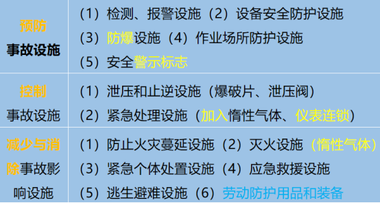 D.泄压的阀门、爆破片和阻火器、防火墙属于减少与消除事故影响设施