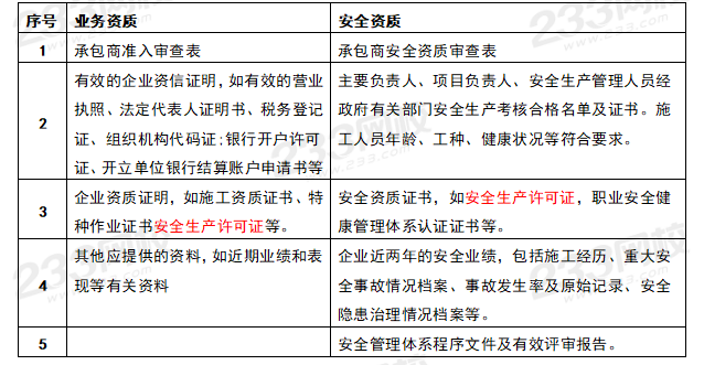 C.承包企业的资质审查中包括业务资质审查、安全资质审查两类