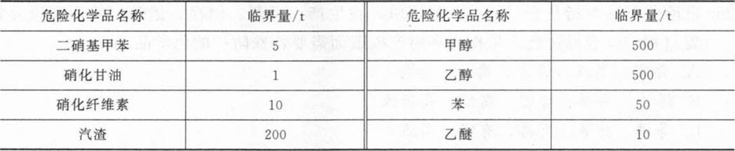 1、某化学品企业有A、B、C、D库房,不同库房放不同类别的危险化学品,各库房之间的间距都在600 m以上,A库房内存有8t乙醇、5t甲醇,B库房内存有12t乙醚,C库房内存有0.8 t硝化甘油,D库房内存有0.5 t苯。根据下表给出的临界量,各库房中属于重大危险源的是( )。