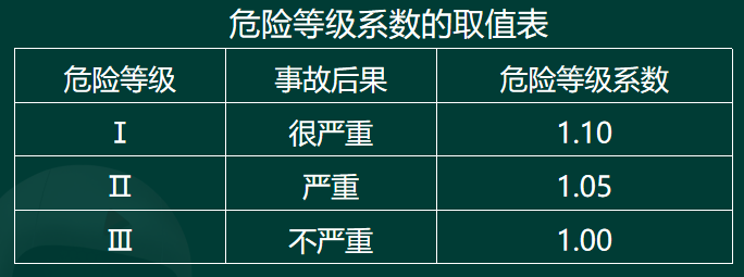 危险等级系数的取值表
