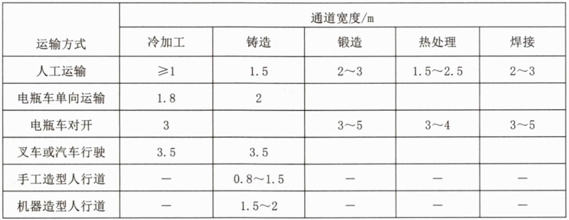 D.热加工车间对于通道的宽度要求严于冷加工车间