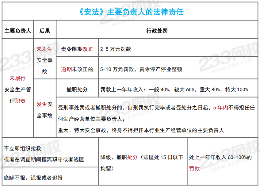 第 96 条 生产经营单位的其他负责人和安全生产管理人员未履行本法规定的安全生产管理职责的,责令限期改正,处 1 万元以上 3 万元以下的罚款;导致发生生产安全事故的,暂停或者吊销其与安全生产有关的资格,并处上一年年收入 20%以上 50%以下的罚款;构成犯罪的,依照刑法有关规定追究刑事责任。