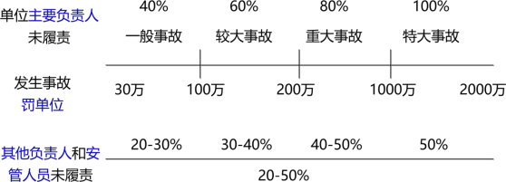(一)事故发生单位主要负责人在事故发生后不立即组织事故抢救,或者在事故调查处理期间擅离职守,或者瞒报、谎报、迟报事故,或者事故发生后逃匿的,处上一年年收入 60%至 80%的罚款;贻误事故抢救或者造成事故扩大或者影响事故调查或者造成重大社会影响的,处上一年年收入 80%至 100%的罚款;