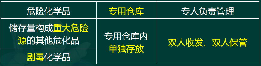剧毒化学品以及储存数量构成重大危险源的其他危险化学品,应当在专用储存场所内单独存放,实行双人收发、双人保管制度,收发记录的保存期限不得少于三年。(新)