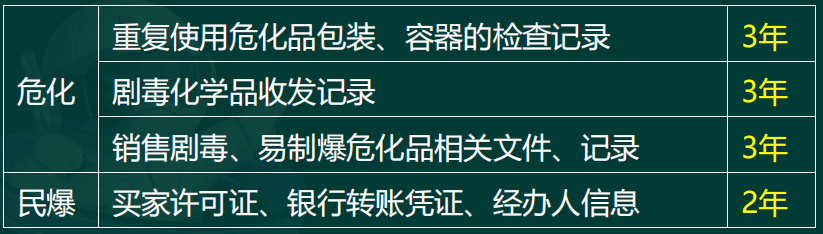 【考点提示】《危险化学品安全管理条例》使用单位应当对检查情况作出记录,记录的保存期限不得少于2年。