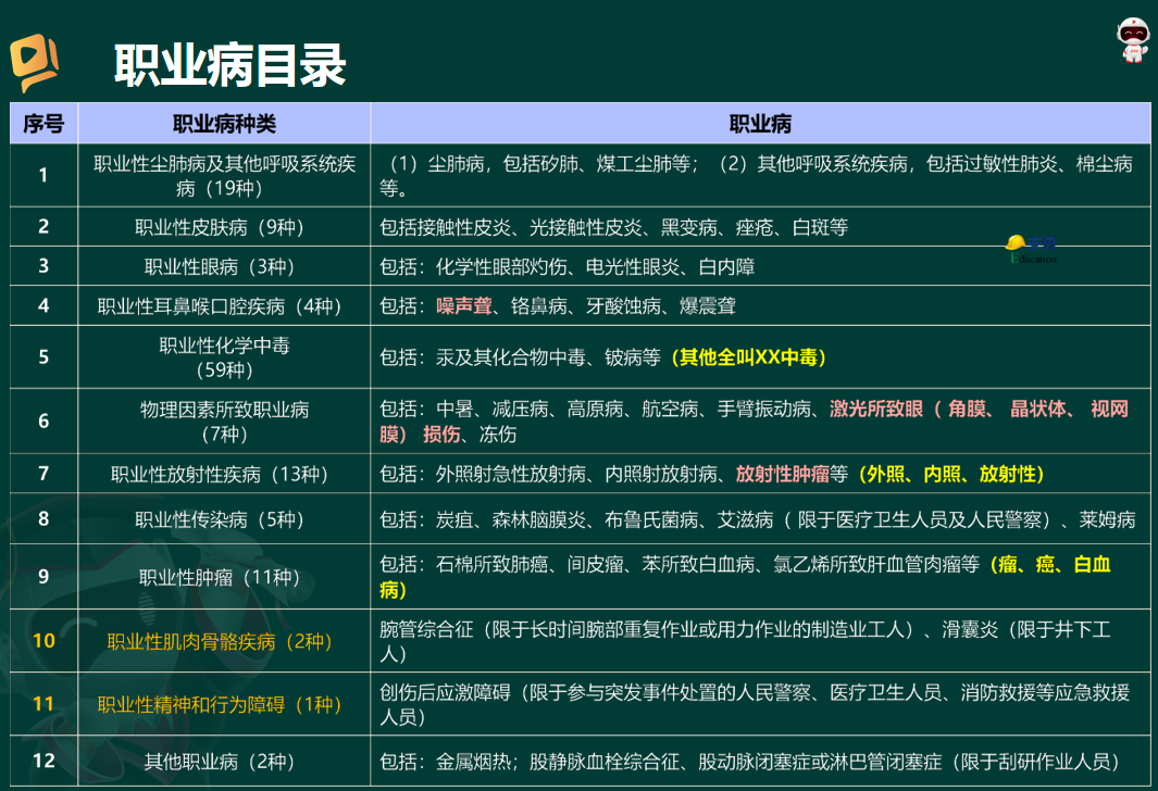 综上,本题应选D。AB选项需要接触放射性物质,C选项作业环境存在粉尘。
