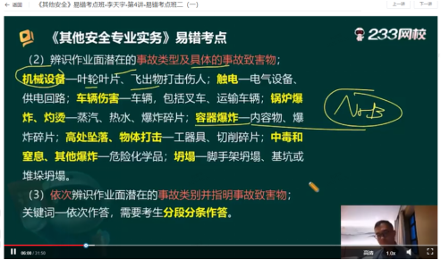 案例题主观题部分在学习王培山或李天宇精讲课程的基础上,利用考前课程与相关资料进行有效背记为主,其中模考金题班+案例专项班分值覆盖案例主观题部分更是高达80%。由此可知其他安全是很适合利用考前课程与资料进行有效冲刺的一个课程,但是参加26年的考生朋友也需要注意,冲刺也是建立在对内容的理解以及一定案例题练习的基础上进行的。这就需要大家通过精讲课程对知识点理解,然后通过习题类班级练习,最后通过考点总结或者资料在考前进行有效背记,这样在考场才能游刃有余的输出想要的答案。以下是25年233网校课程内容覆盖真题。