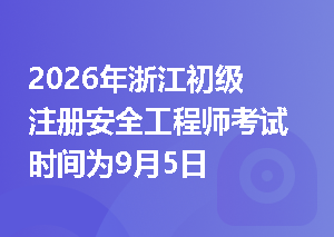 浙江人事考试中心发布《2026年度专业技术人员资格考试工作计划》,2026年浙江初级注册安全工程师考试时间为9月5日。☟☟加学霸君微信,拉你进备考学习群☟☟2026年度人事考试工作计划序号考试名称考试日期1公安机关面向公安院校毕业生考试录用公务员笔试1月10日、11日2咨询工程师(投资)4月11日、12日3省工业设计(初级、中级、高级)4月18日4省档案(初级、中级、高级)5二级造价工程师4月19日6事业单位招考笔试4月25日7一级注册建筑师5月16日、17日、23日8二级注册建筑师5月16日、查看更多>