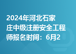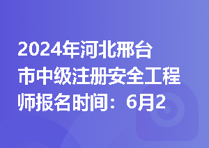 根据中国人事考试网报考提醒,2024年中级注册安全工程师报名时间确定在6月20日-7月10日进行,各地报名时间有所不同,但报名周期一般在7-12天左右,具体时间安排需以当地人事考试机构通知为准,全国统一考试时间为10月26日、27日。各省2024年中级注册安全工程师报名时间预测表2024年中级注册安全工程师报名流程2024年中级注册安全工程师报名实施网上报名,报名网站为中国人事考试网。详情如下:点击进入>>2024年中级注册安全工程师官方报名入口中级注册安全工程师报名时,需上传本人证查看更多>