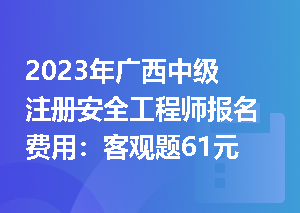 2025年广西中级注册安全工程师报名费用:252元(四科)。按照《广西壮族自治区人力资源和社会保障厅关于公布高级社会工作师等4项专业技术人员资格考试收费标准的通知》(桂人社规〔2019〕20号)规定,客观题考试费每人每科为61元;主观题考试费每人每科为69元。各科目报名费用如下表:科目收费标准合计费用安全生产法律法规61元252元安全生产管理61元安全生产技术基础61元安全生产专业实务(任选一科)69元特别注意:注安报名时,缴费成功即可视为报名成功!2025年广西中级注册安全工程师报名缴费时间将查看更多>