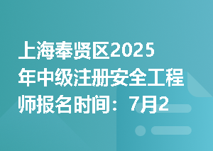 2025年上海中级注册安全工程师报名时间的相关新闻