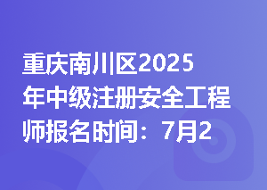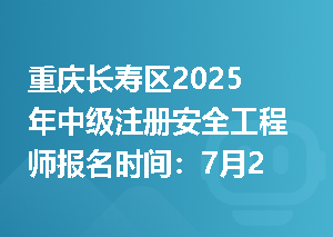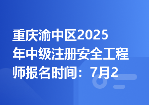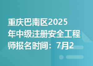 重庆2025年中级注册安全工程师报名时间的相关新闻