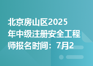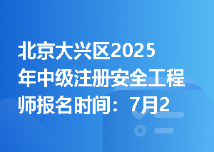 北京2025年中级注册安全工程师报名时间的相关新闻