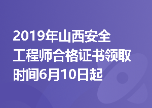 2019年山西安全工程师合格证书领取时间 合格证书 2020-01-20