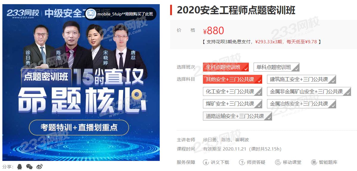 233网校的钻石无忧班包含8个子班级。囊括了入门阶段、基础阶段、强化阶段、冲刺阶段,为考试保驾护航,以下是其他安全相关课时和零基础学习计划表,建筑安全、化工安全等专业可以以此类推。