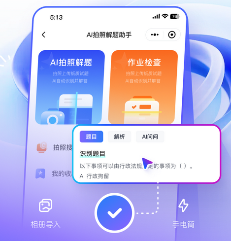 在职考生张工分享:“通勤路上拍下题目,AI自动生成答案解析+精简知识点考点,有疑问当场解决,不留知识死角。”