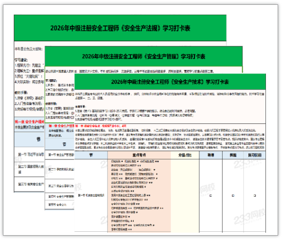 别担心,你的专属备考规划师已上线!我们为你精心准备了 【2026年注安备考学习打卡表 & 核心思维导图】。这套资料就是你通关的路线图和武器库: