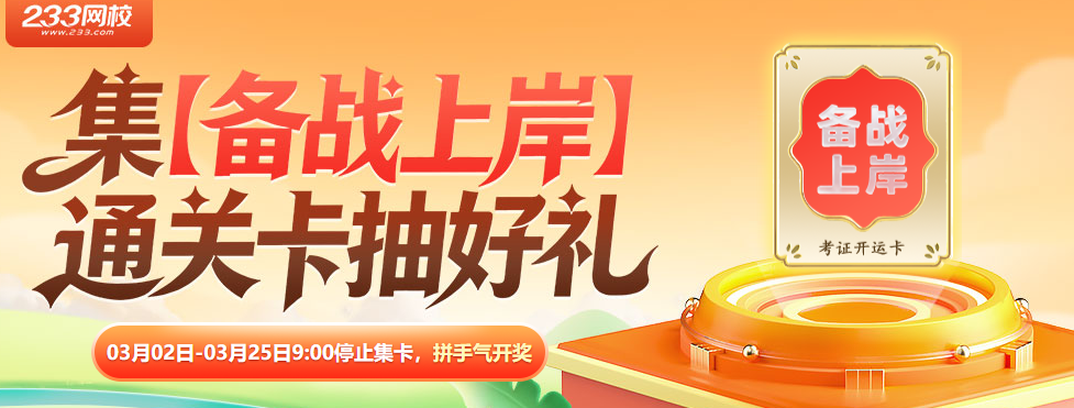为了致敬每一个为梦想拼搏的注安考证人,233网校特别策划「备战上岸」集卡抽奖活动,陪你在考证路上加buff、赢好礼!
