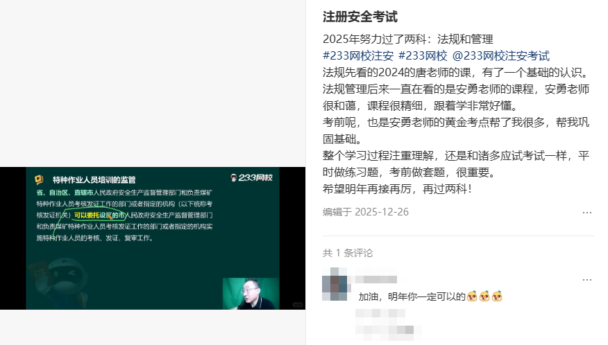 1️⃣ 直接在抖音或小红书发布分享内容-分享您的真实备考经历或使用233网校产品体验