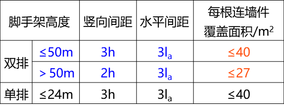 当需要的搭设高度大于 50m 时,一般都比较慎重地采用了加强措施,如采用双管立杆、分段卸荷、分段搭设等方法