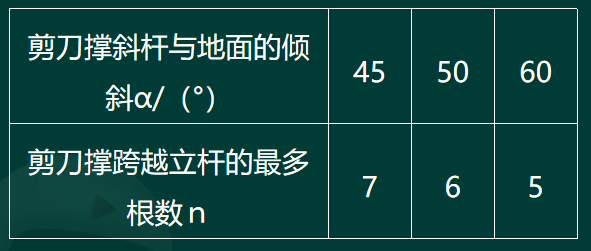 双排脚手架应设置剪刀撑与横向斜撑,单排脚手架应设置剪刀撑。每道剪刀撑跨越立杆的根数为 5~6 根,斜杆与地面的倾角应在 45°~60°之间。剪刀撑斜杆的接长应采用搭接或对接,应用旋转扣件固定在与之相交的横向水平杆的伸出端或立杆上,旋转扣件中心线至主节点的距离不应大于 150mm。高度在 24m 及以上的双排脚手架应在外侧全立面连续设置剪刀撑;高度在 24m 以下的单、双排脚手架,均必须在外侧两端、转角及中间间隔不超过 15m 的立面上,各设置道剪刀撑,并应由底至顶连续设置。