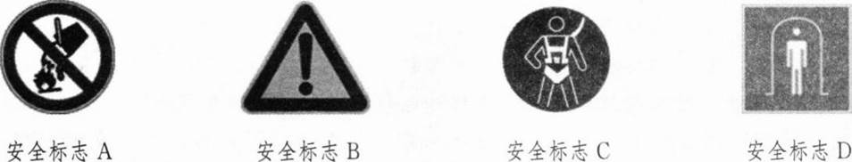 B选项:安全标志B属于警告标志,是提醒人们对周围环境引起注意,以避免可能发生危险的图形标志。