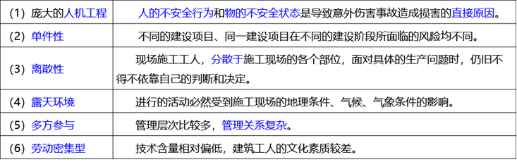 建筑业自身特点对安全生产的影响考点解析