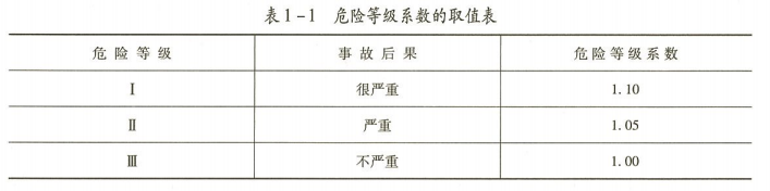 危险等级系数的取值表