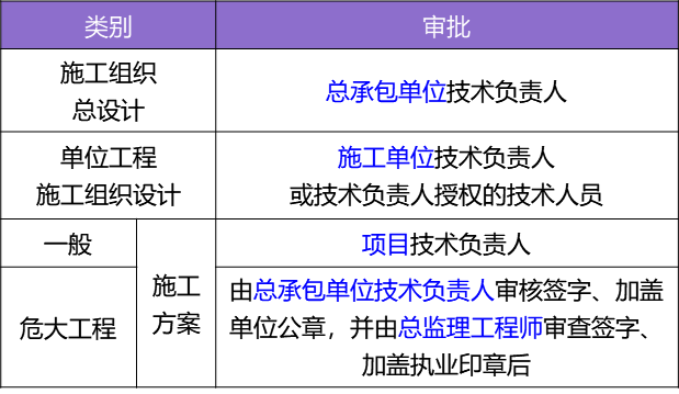 单位工程施工组织设计应由施工单位技术负责人或技术负责人授权的技术人员审批施工方案应由项目技术负责人审批