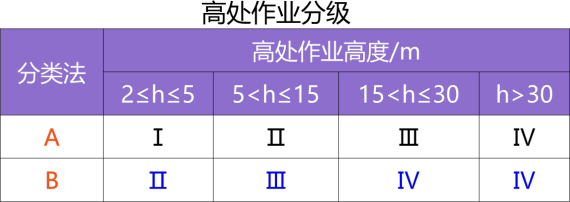 高处作业分为特殊高处作业 (B 类)和一般高处作业 (A 类)