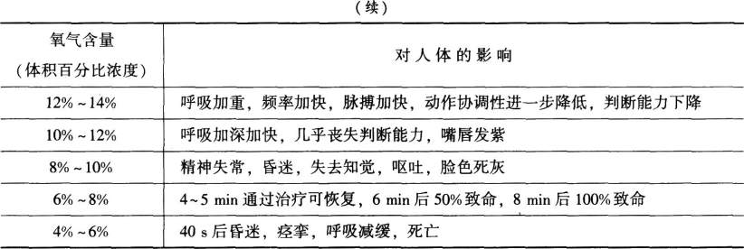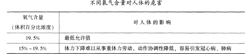 (5)较高的氧气消耗速度,如过多人员同时在有限空间内作业