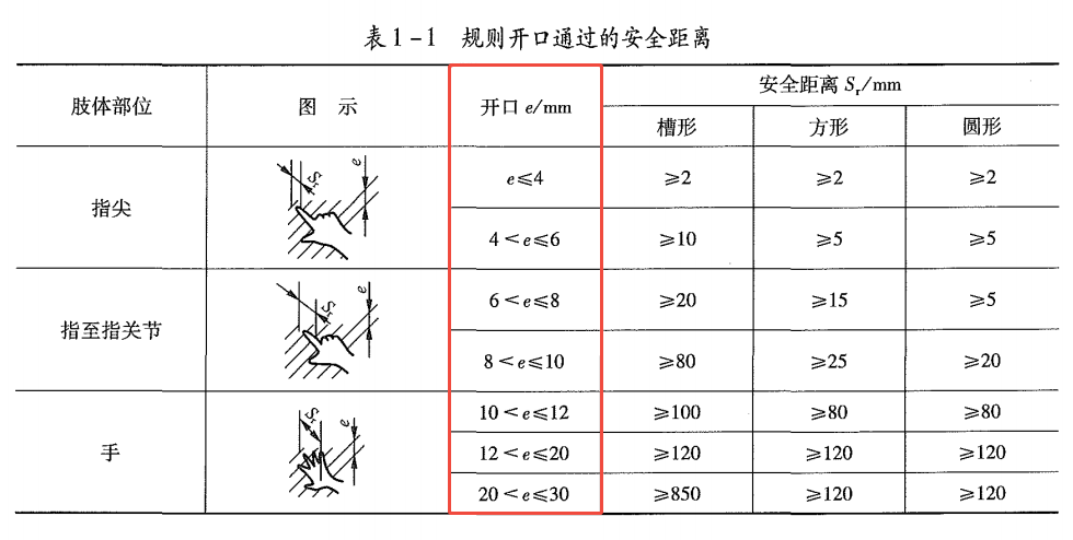 (7)防护装置的开口要求: