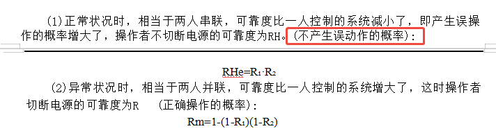 正常情况(串联):操作者不切断电源的可靠度RHc=R1*R2