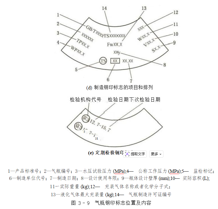 气瓶的钢印标志是识别气瓶的重要依据。气瓶的钢印标志包括制造钢印标志和检验钢印标志。
