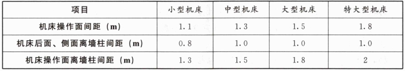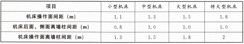 1、甲公司为了变更工艺,加快生产效率,新引进了一批小型机床,机床后面、侧面离墙柱间距应设置为( )。