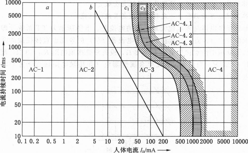 A.b区域为AC-2所在的区域,该区域电流较小,通过人体几乎无生理效应