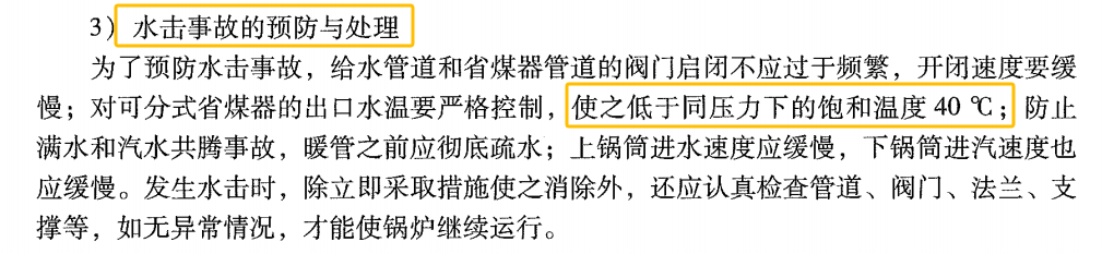 可分式省煤器的出口水温过高,超过了同压力下的饱和温度40℃。