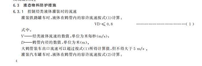 (2)工艺控制。为了限制产生危险的静电,烃类燃油在管道内流动时,流速与管径应满足要求。