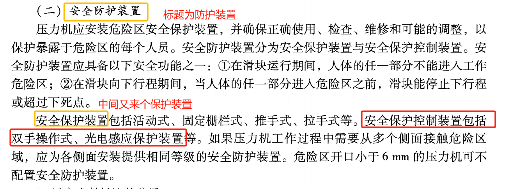 ※解题思路:安全保护控制装置是压力机这一节单独提到的, 跟我们第一节所学的防护装置与保护装置是冲突的, 建议学员区分记忆。