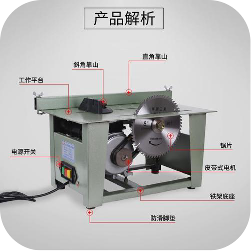 (1)工作台应符合安全人机学要求的设计。安装后的工作台面离地面高度应为750~800mm; 机身外形采用圆角和圆滑曲面,避免利棱锐角。台面应平整、光滑,不得坑凹凸起,防止木料通过弹跳、侧倒。